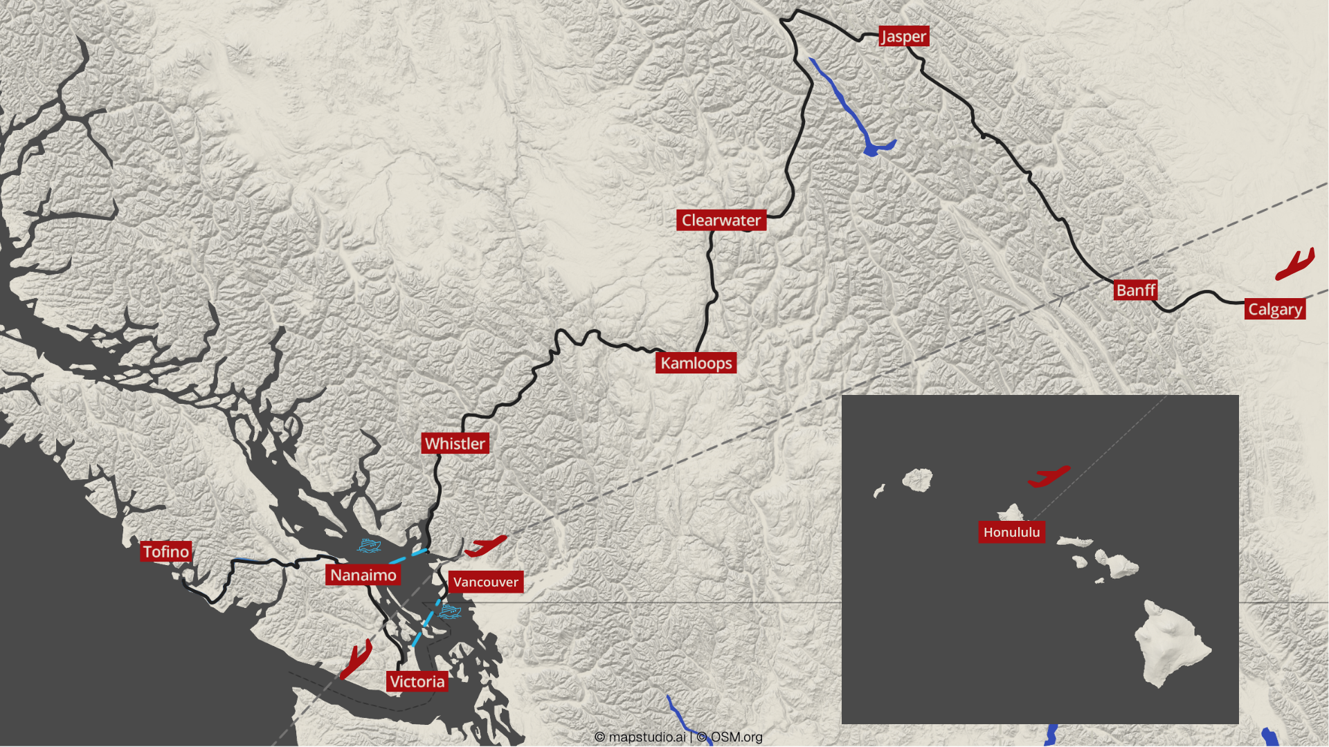 Erleben Sie eine eindrucksvolle 3-wöchige Kanada Reise, welche die atemberaubenden Rockies Kanadas mit der entspannten Tropenwelt Hawaiis verbindet. Die Reise beginnt in Calgary, dem Tor zu den majestätischen Nationalparks Banff und Jasper, wo Sie klare Bergseen, beeindruckende Gletscher und eine vielfältige Tierwelt entdecken. Über die charmanten Orte Clearwater, Kamloops und das Outdoor-Paradies Whistler führt Sie die Route weiter nach Nanaimo, Tofino und Victoria auf der wunderschönen Vancouver Island mit wilden Küstenlandschaften und kulturellen Highlights.