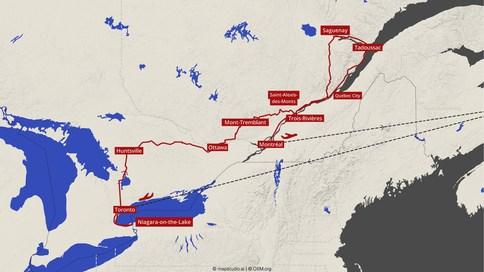- Flug von Deutschland nach Toronto und von Montréal zurück